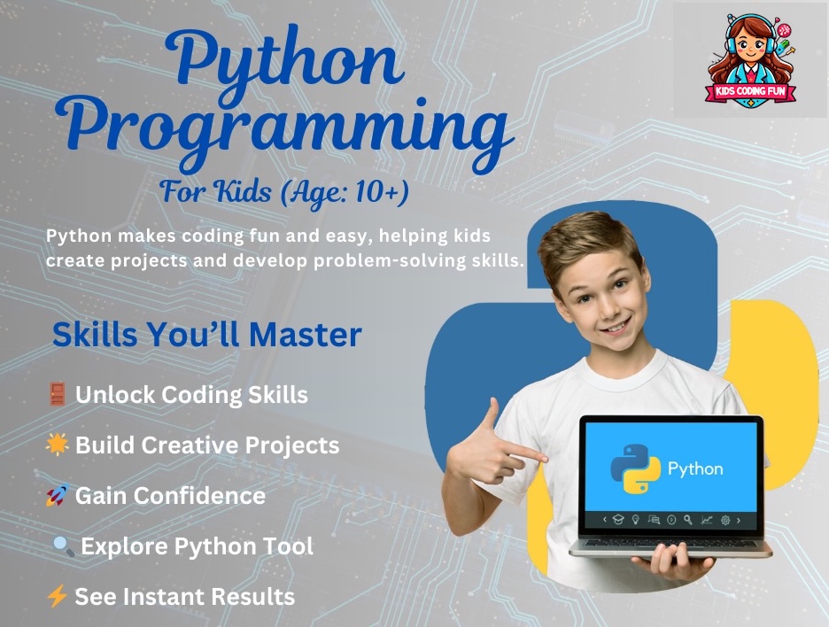 Introduce your child to the exciting world of Python programming — one of the most popular and beginner-friendly coding languages used by developers, engineers, and data scientists worldwide. Our Python Coding Classes in Kitchener-Waterloo are designed for kids and teens ready to move beyond block-based tools like Scratch and explore real-world programming through fun, interactive lessons.